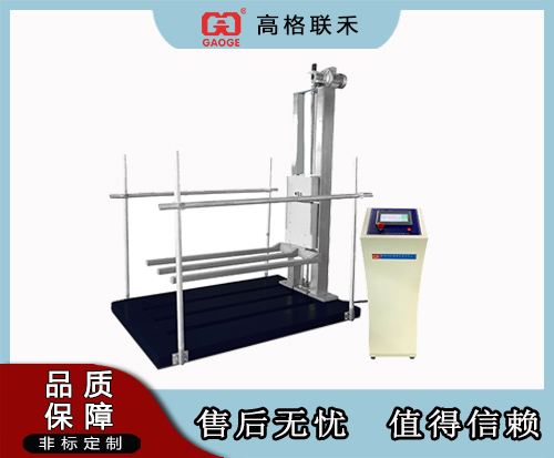 本试验台主要用于考核包装件在实际运输,装卸过程中受到跌落冲击的影响程度,评定包装在搬运过程中耐冲击强度和包装设计的合理性,零跌落试验机主要用于较大型包装跌落试验,零跌落试验机由一个可以快速向下移动的“叉”作为试件托架,被试货物按试验要求(面,棱,角实验)放置平衡。试验时,托板高速向下运动,脱离试件,叉在被试包装货物跌落至底版胶,已在高效减振器的作用下,嵌平于底板,从理论上,零跌落试验可从零高度范围作跌落试验,跌落高度通过试验要求进行数字设定,并按设定高度自动执行跌落实验,大型包装货物及试件跌落试验